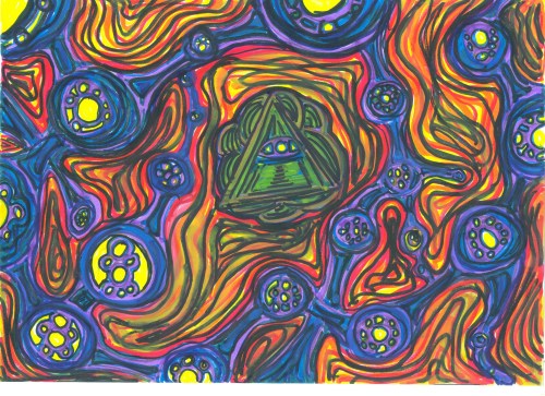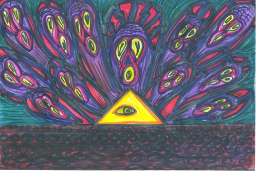 Oh it operates on a lot of different levels but a big one is that the triangle represents reason and the ey represents intution so its a dialectical mind pictogram! Yup, that my own little contribution to the lit, “dialectical mind pictogram”, just kind of rolls of the tongue doesn’t it!