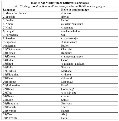 looked at. And on this post How to Say Hello in 30 Different Languages |